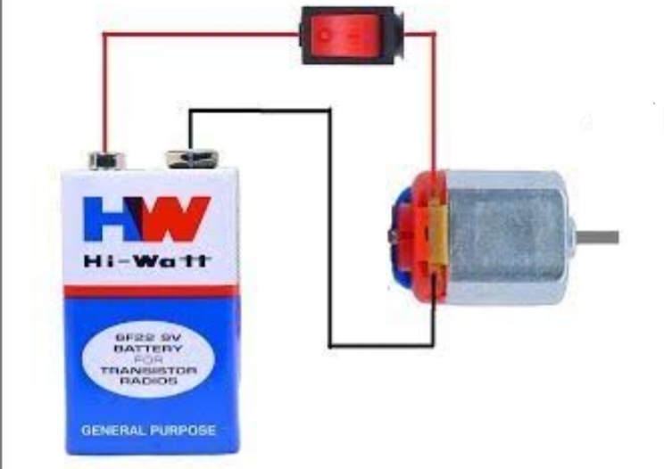 Red wire goes to the battery negative side and black goes to the positive side.Red wire goes from battery to button and then button to motor and the black goes straight battery to motor.